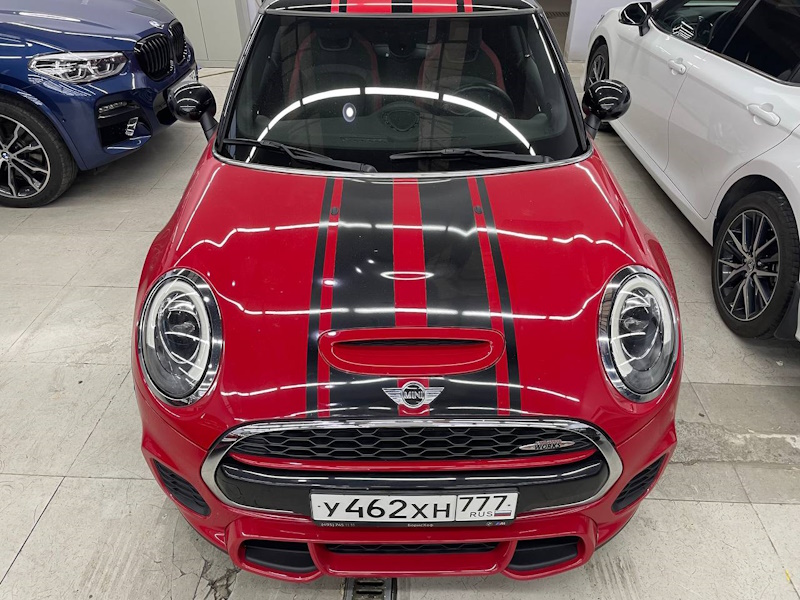Милые симметричные полосы на капоте, крыше, боках отлично воспринимаются окружающими, делают авто заметным и ярким. Поэтому миникуперовцы, которые хотят «подчеркнуть» эмоциональный стиль, представительность и красивую расцветку своего спорткара, могут индивидуально заказать оклейку «двойной след».