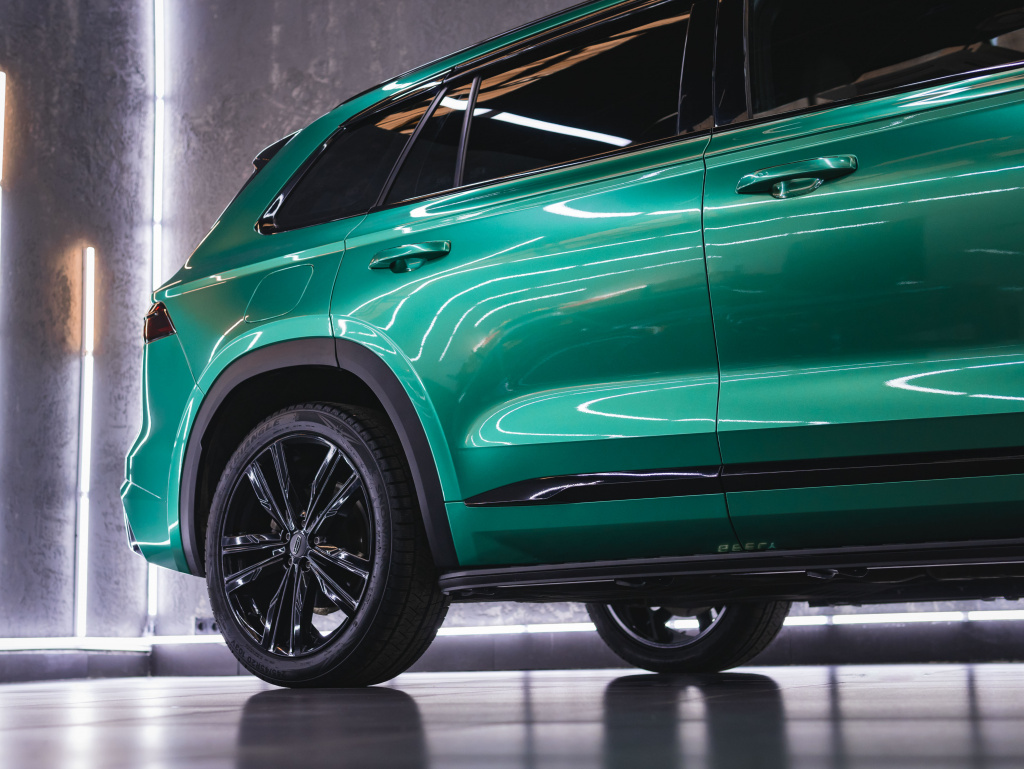 Geely Monjaro оклейка в зеленый винил и антигравийная защита. Стайлинг