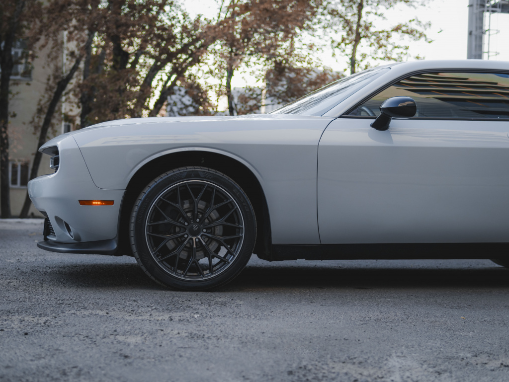 Dodge Challenger оклейка цветным полиуретаном IRISTEK PPF Colors Volcanic Grey, UC1081