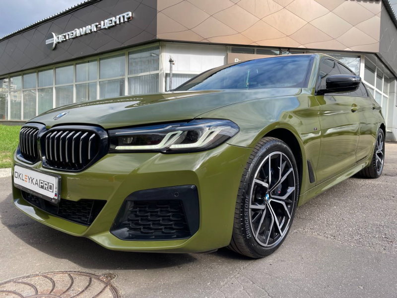 БМВ 5 комплексный детейлинг, цветная оклейка в зеленый