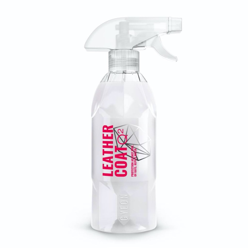 GYEON Q² LEATHER COAT («Лезэ кэот», от англ. пальто для кожи). Это кварцевая пропитка-кондиционер для кожаной обивки. Защищает от растрескивания, выцветания, старения и потертостей. Придает мощные грязе- и водоотталкивающие свойства. Усиливает матовый оттенок кожи и не дает «жирного» блеска. Не делает кожу скользкой. Позволяет коже «дышать» и не забивает поры. Стойкость до 4 месяцев.
