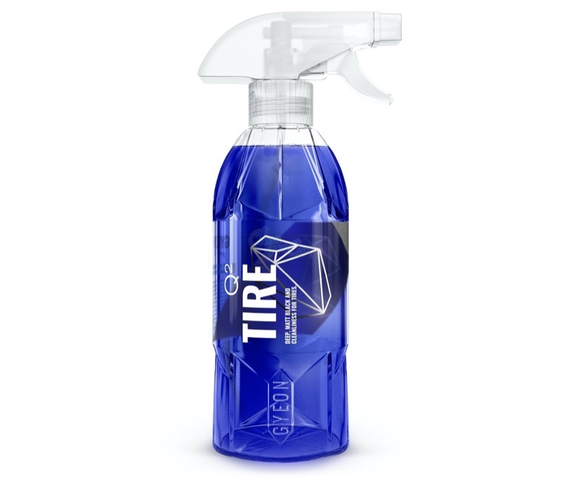 GYEON Q² TIRE («Тайер», от англ. шина). Кварцевая защита и реставрация шин. Первое в мире защитное покрытие на основе диоксида кремния (SiO2), разработанное специальное для автомобильных шин. Намного больше, чем просто «чернитель» шины. Тайер превосходит почти все аналоги по стойкости и гидрофобному эффекту. Это средство насыщает черный цвет, отталкивает воду и грязь. Долго сохраняет благородный «мокрый» блеск.
