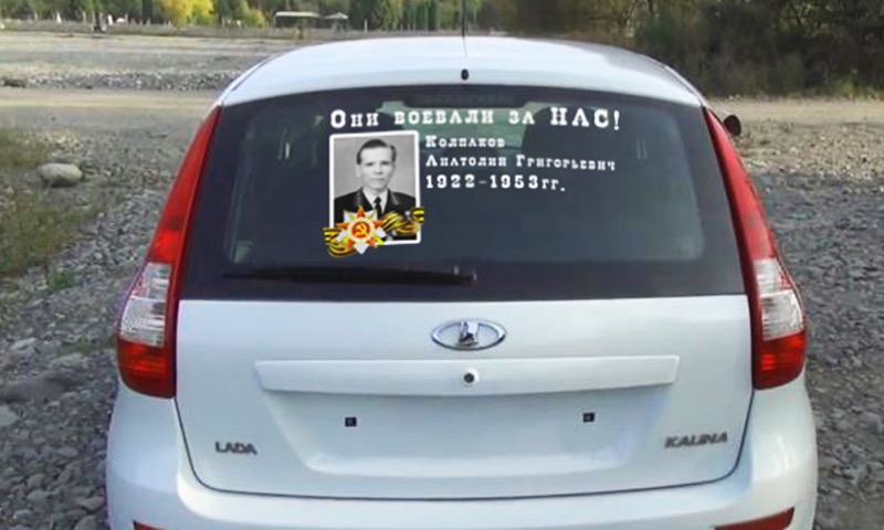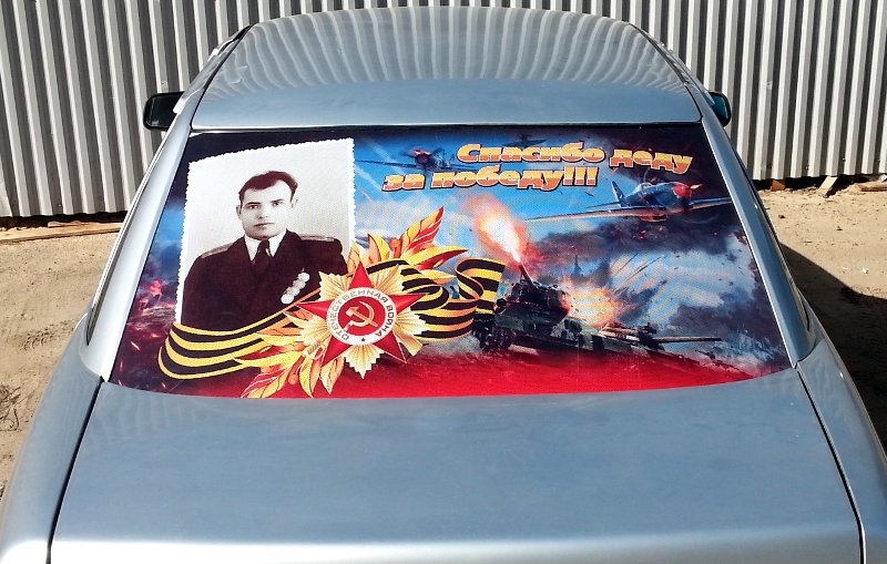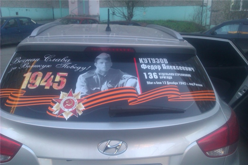 Наклейка фотографий ветеранов на авто для акции Бессмертный полк.