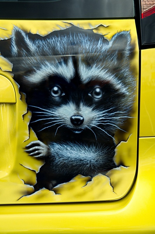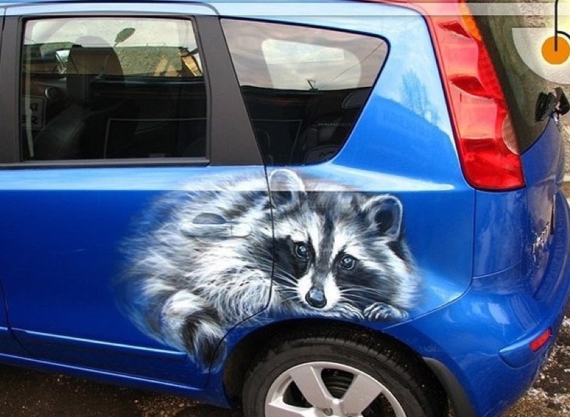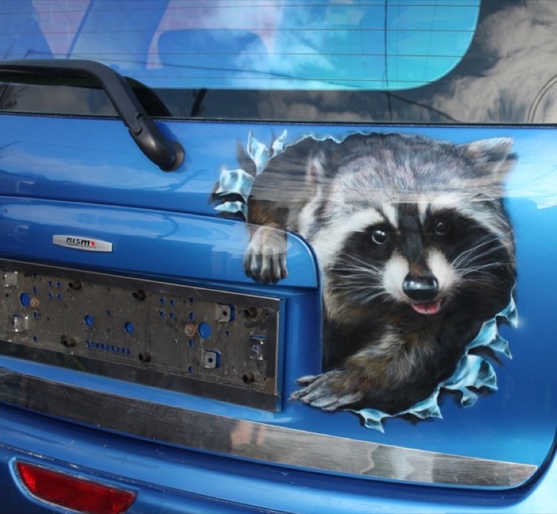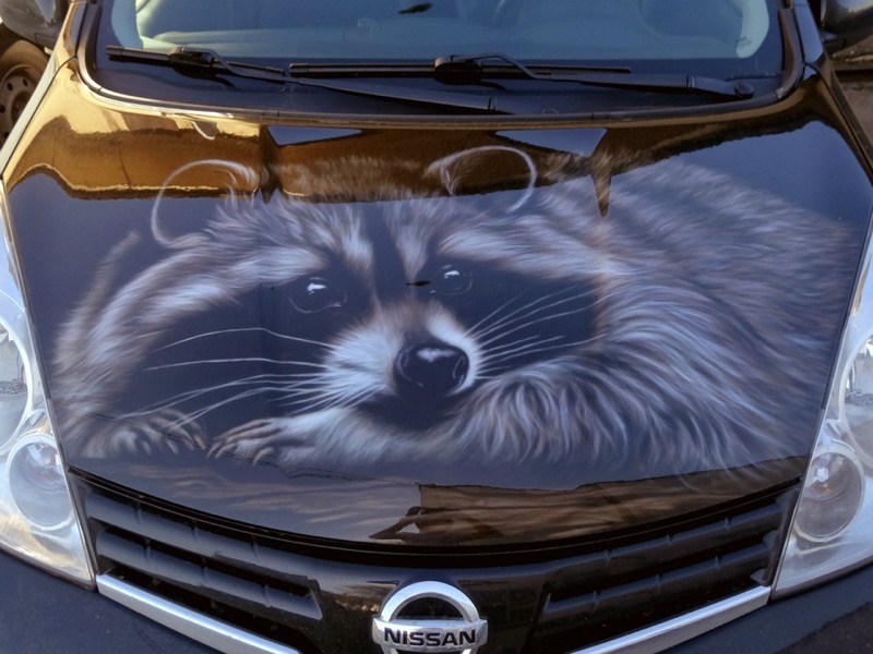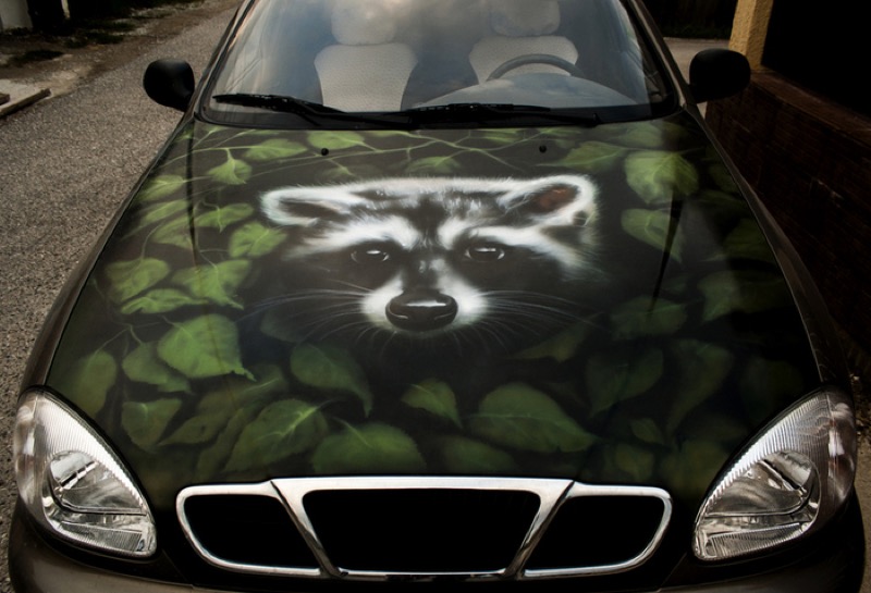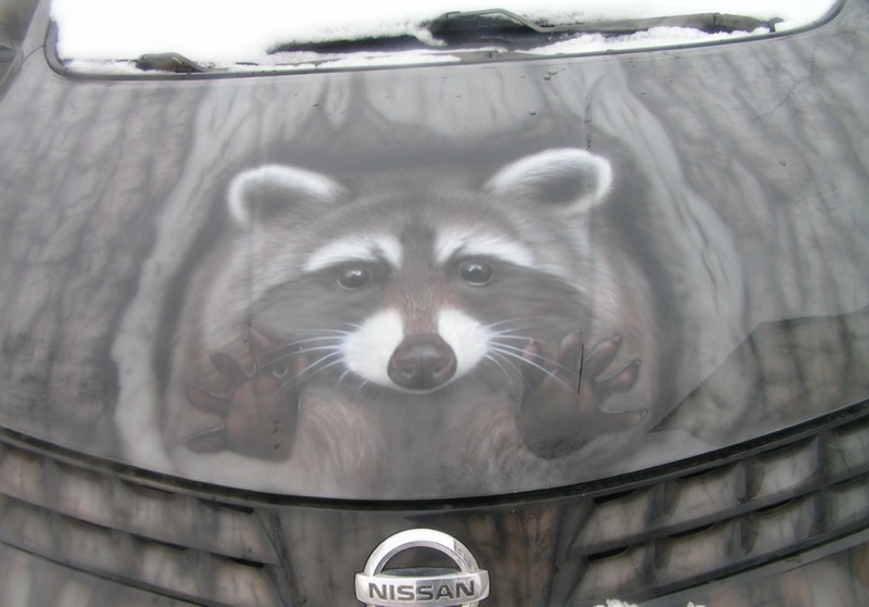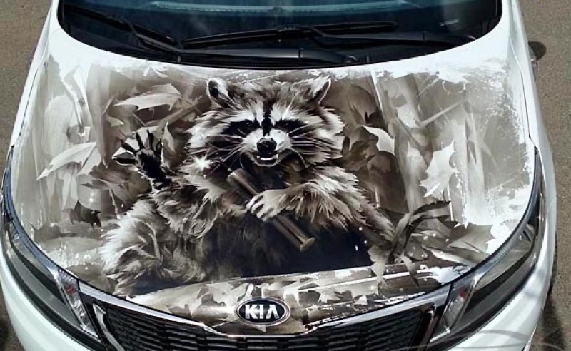 Енот на авто: аэрография автовинилом. На капот, кузов, двери, багажник.