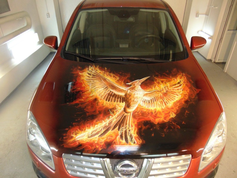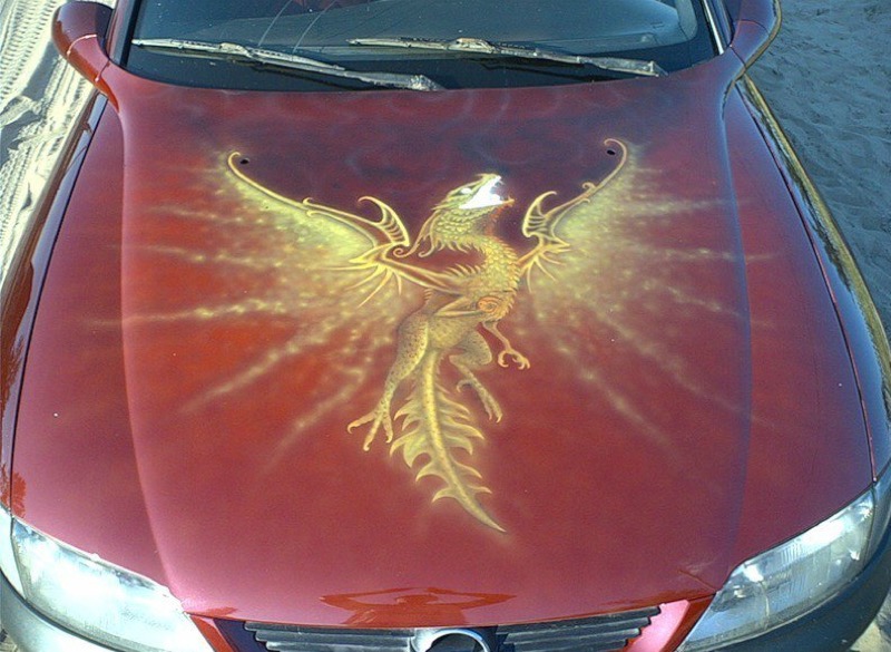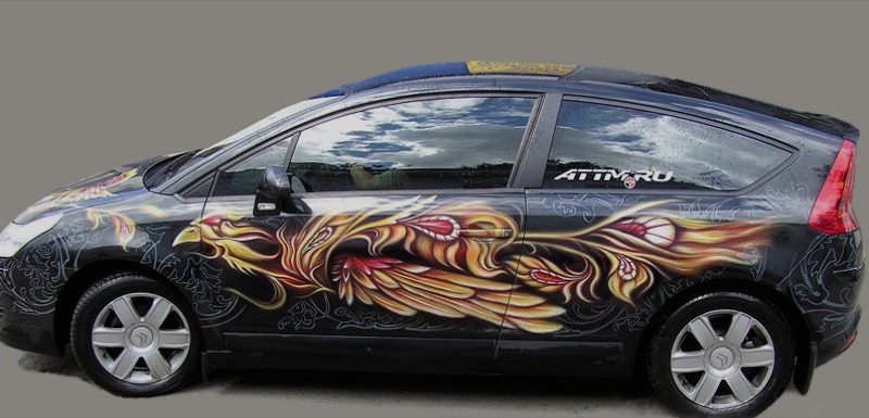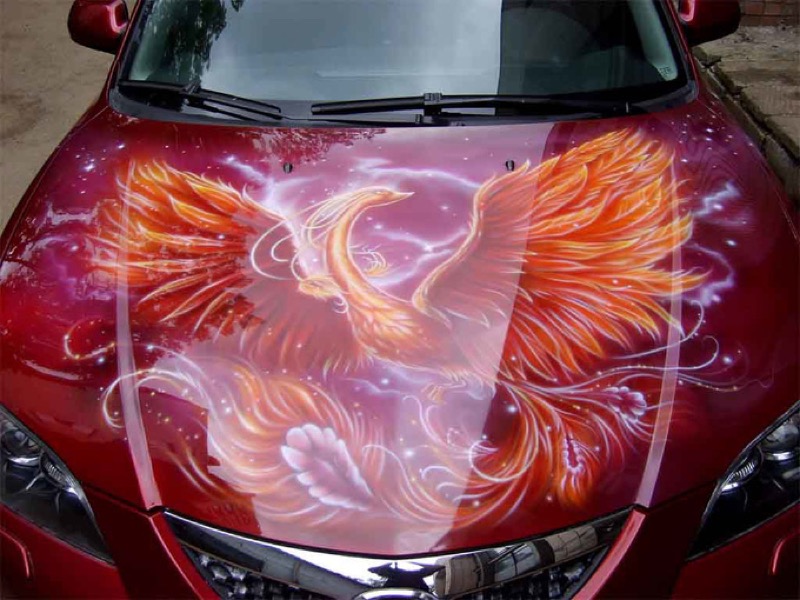 Жар-птица или птица Феникс на авто: аэрография, винилография.