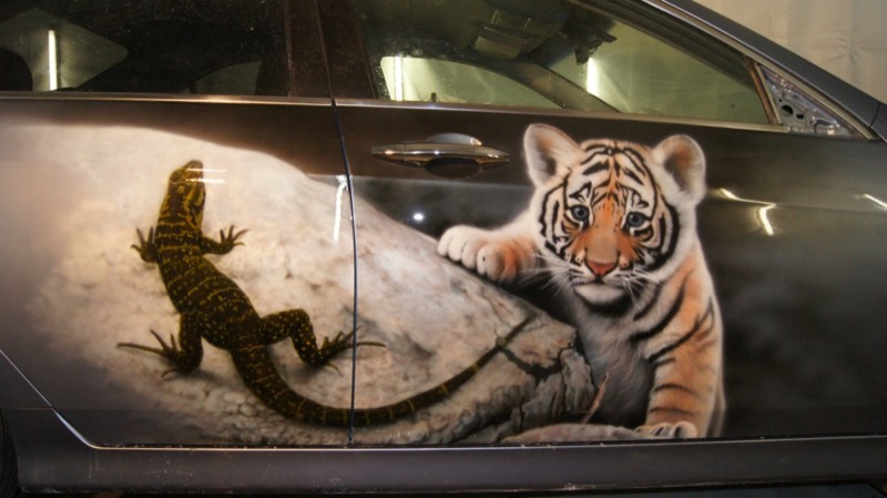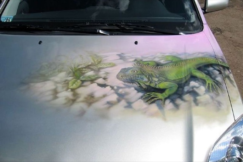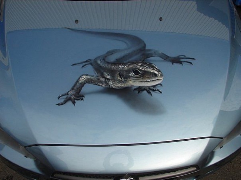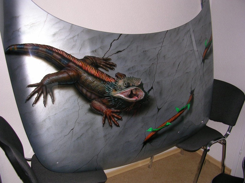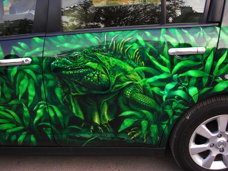 Ящерица на авто: на кузов, капот, двери, крышу. Аэрография автовинилом.