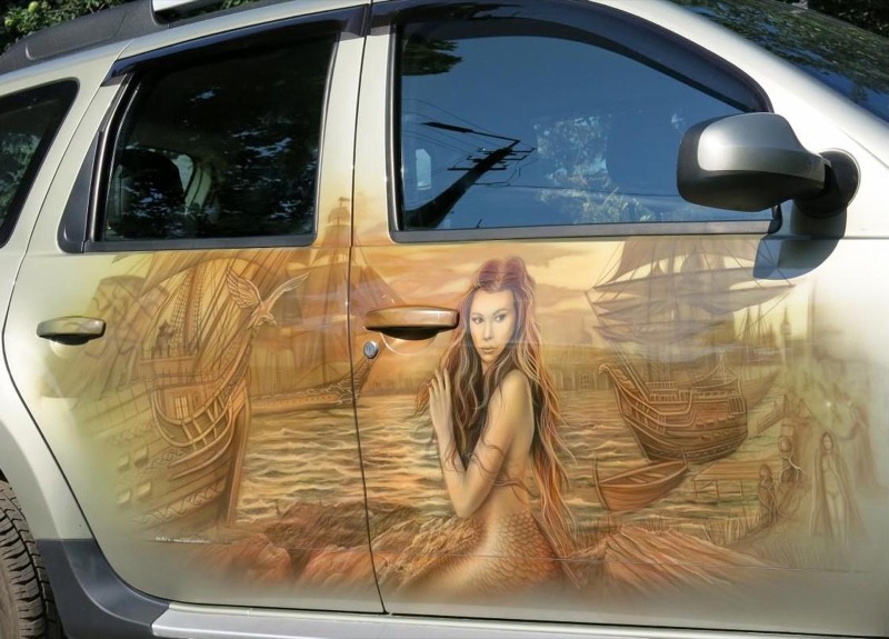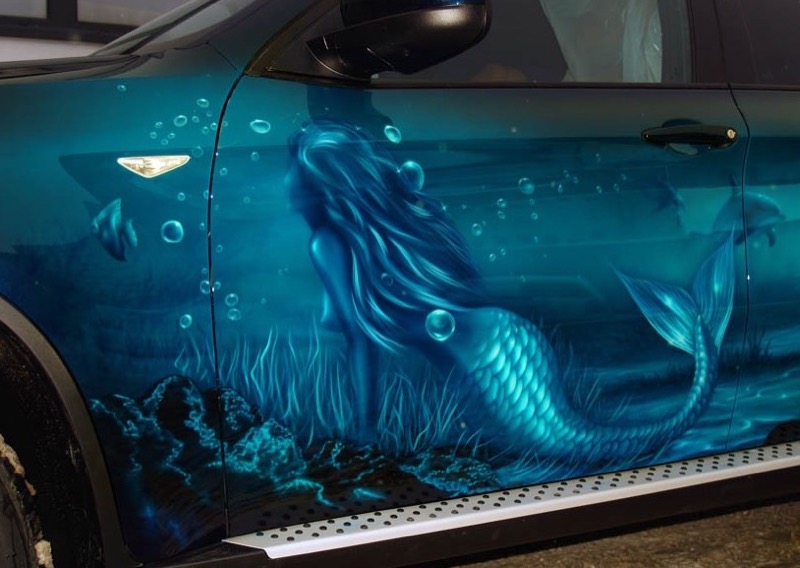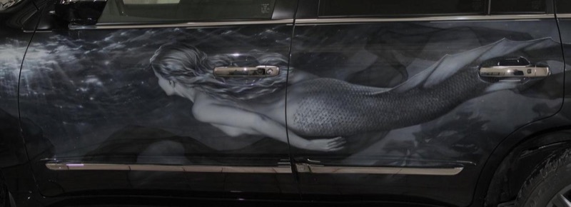 Мы изготовим изображение Русалки (Ундины) для автомобиля методом аэрографии пленкой — винилографии. Любое изображение на капот, двери, крышу или весь кузов машины.