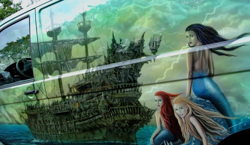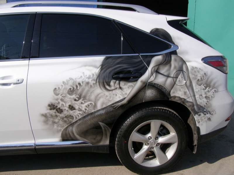 Русалка на автомобиль: аэрография виниловыми пленками.