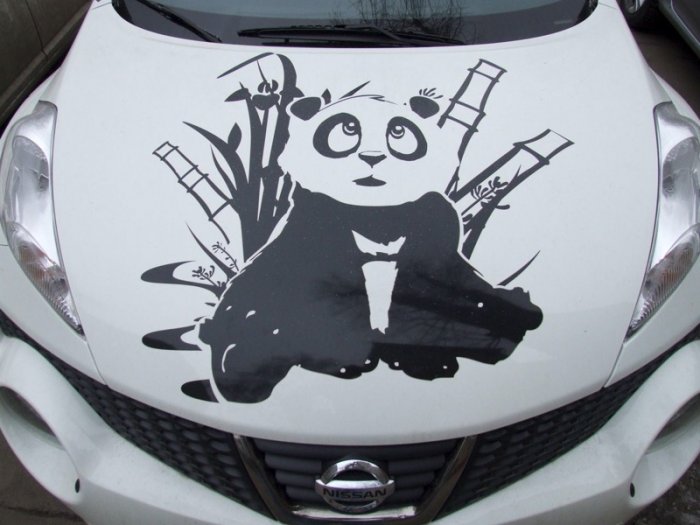 Панда на авто: аэрография методом винилографии. На капот, крышу, двери, крылья машины.