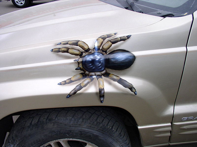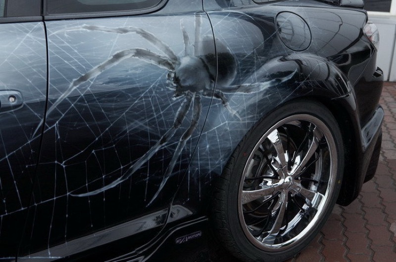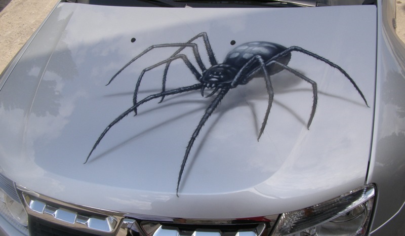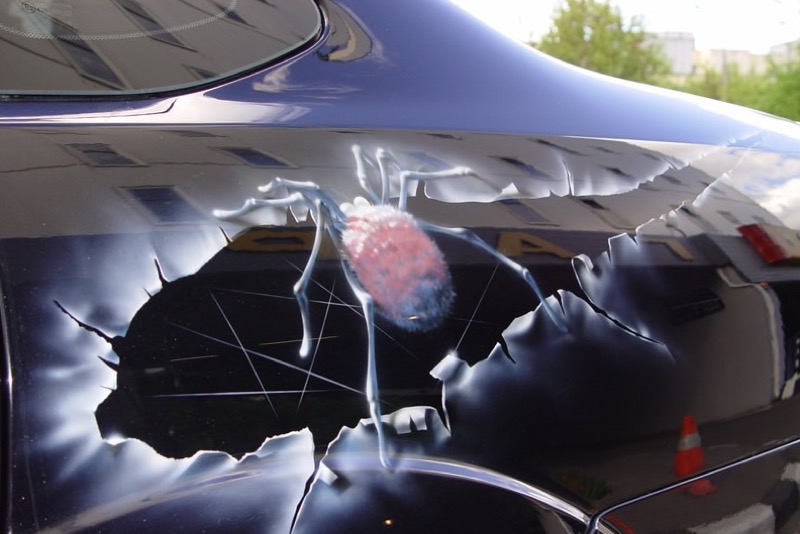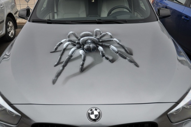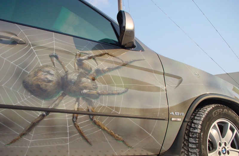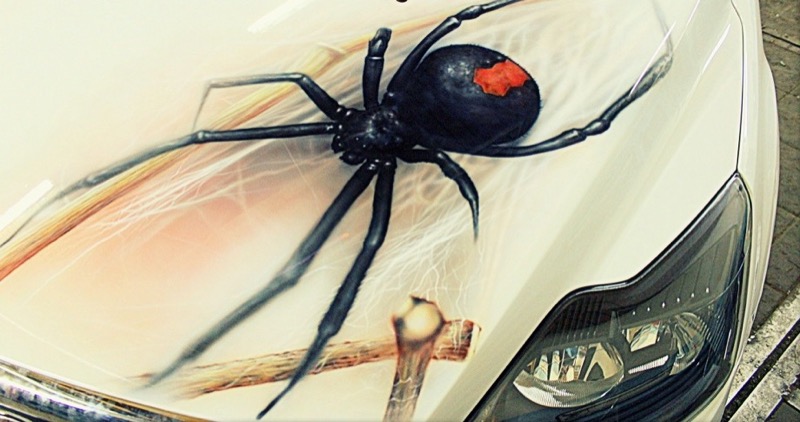 Рисунок выберите на свое усмотрение: это может быть черно-белая графика или 3D-фотография, которая заставляет поежиться от живости изображения. Мы выполним печать на виниловой пленке и профессионально оклеим автомобиль. Лучшие места для размещения декора — капот, бока и заднее стекло машины.