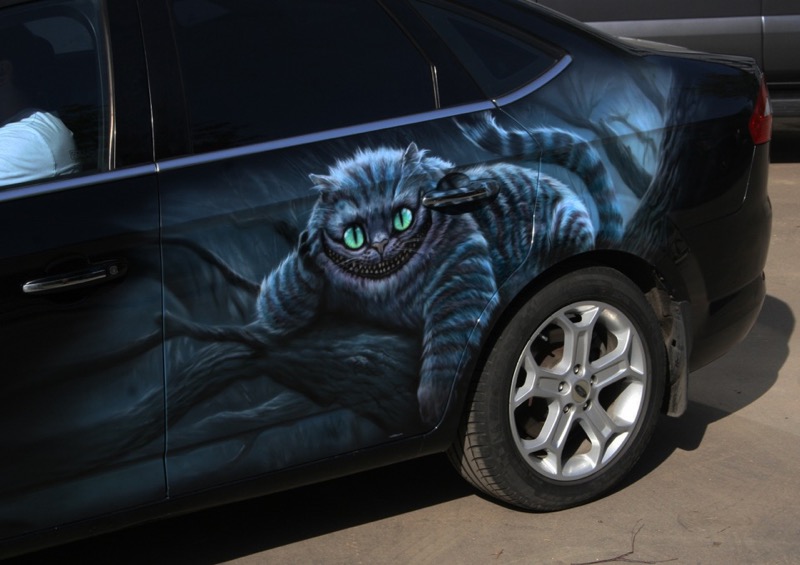 Виниловая наклейка на кузов авто с изображением героев замечательной сказки Льюиса Кэрролла будет ежедневно вдохновлять и радовать владельца позитивом. Окружающие с удовольствием будут перечитывать текст философских изречений Гусеницы на двери, багажнике или заднем стекле автомобиля. Детям понравится загадочная улыбка Чеширского кота и слегка грустный Шляпник-Джонни Депп на капоте, крыше и боках машины.