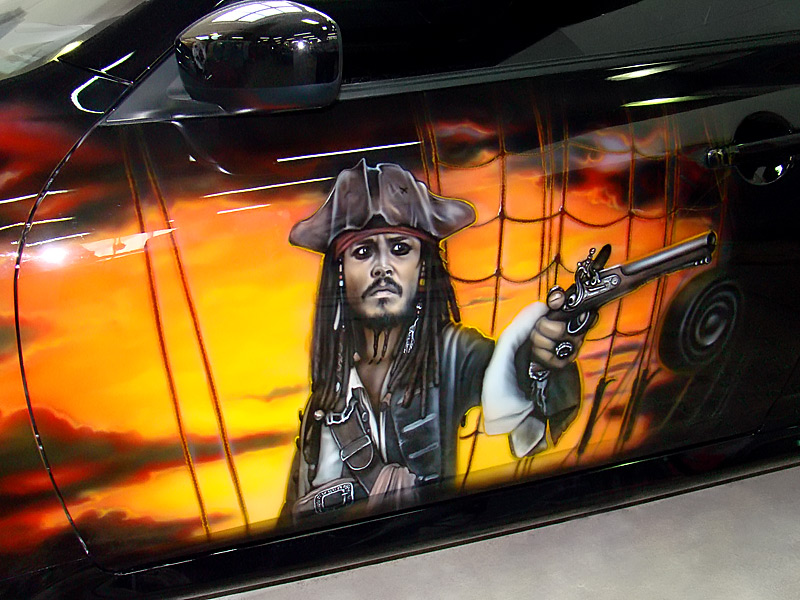 Пираты карибского моря — аэрография пленкой на автомобили, мотоциклы, шлемы. Нанесем абсолютно любой рисунок, на любой элемент. Наши возможности шире, чем представленные тут примеры. Уточняйте подробности у менеджеров.