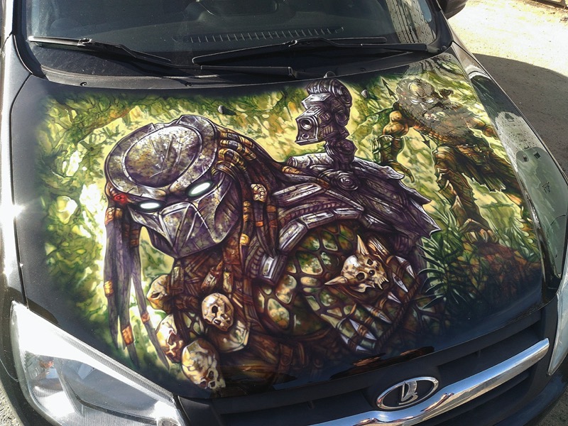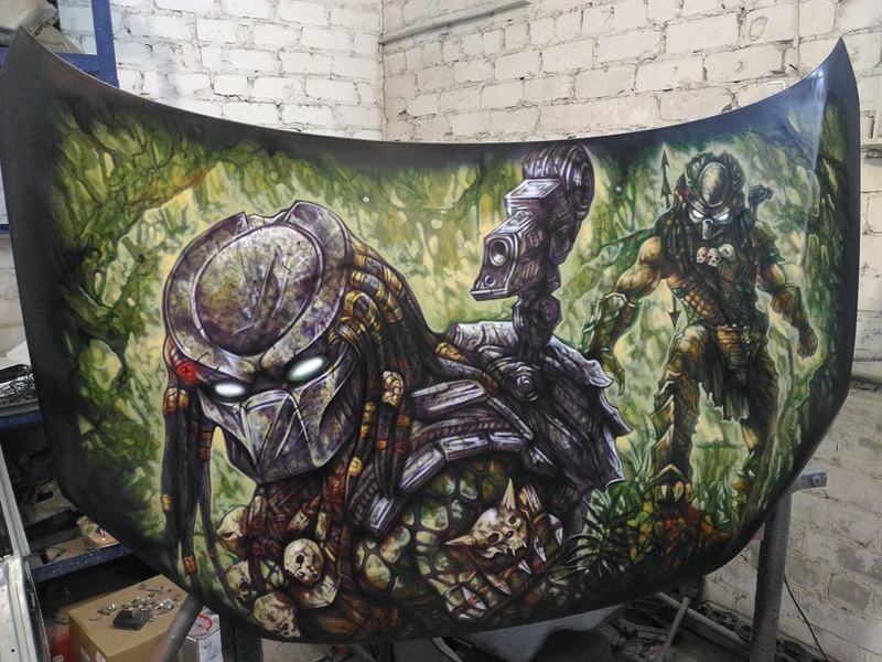 Хищник аэрография пленкой на авто, мотоциклы, шлемы. Напечатаем абсолютно любой рисунок, на любой элемент. Уточняйте подробности у менеджеров.