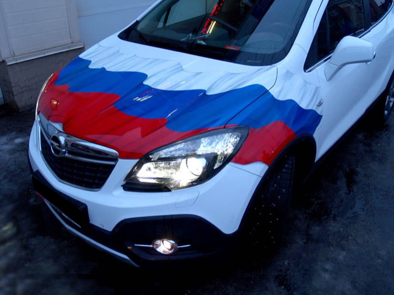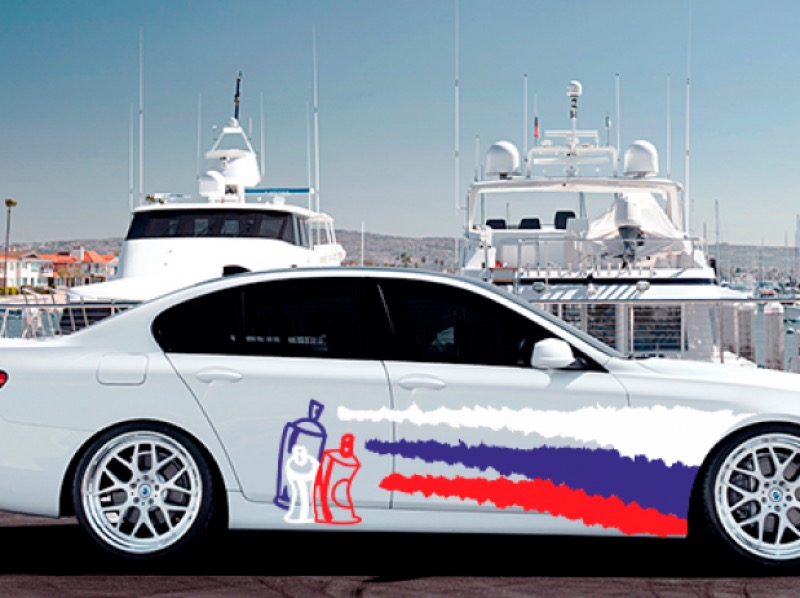 Наш дизайнер в Москве предложит стильное и актуальное решение для вашей модели — на крыше, зеркалах заднего вида, стекле, бортах или запасном колесе. Оригинальный вариант бело-сине-красного дизайна — начать декорировать с капота, продолжить по боку (двери) и завершить крышкой багажника. Но не сплошной длинной наклейкой по борту, а частично, с учетом индивидуальной геометрии кузова авто. Мы профессионально оклеим картинками и ламинируем для защиты от повреждений.