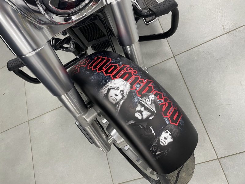 Выполним винилографию в едином стиле для всего байка или его отдельных частей: вилки, крыльев, топливного бака и др. Для автомобиля предложим дизайн небольшого стикера или длинной наклейки Motörhead на капот, крышу, багажник, двери или сразу на весь кузов.