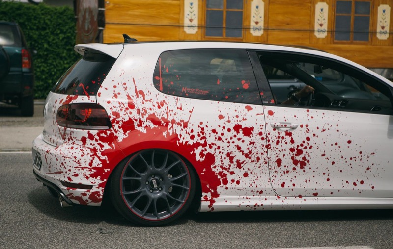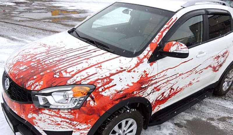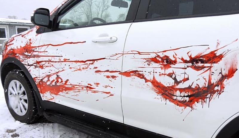 Любите эпатаж? Шокируйте окружающих видом окровавленного автомобиля! Закажите виниловую наклейку на авто с изображением подтеков свежепролитой крови, и тогда ваше появление в транспортном потоке точно не останется незамеченным. Винилография с кровью выглядит особенно устрашающе при размещении на бампере и капоте машины. Также выразительно смотрятся длинные наклейки от крыла до дверей с очертаниями жутких фигур, проступающих из кровавого марева.