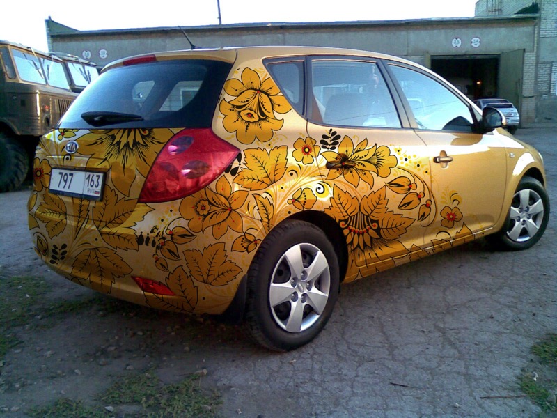 Затейливая хохломская роспись — древнейший народный промысел. Когда-то узорными завитками, листьями и ягодами украшали только деревянную кухонную утварь, но современность диктует свои правила. Последуйте старой традиции в новом звучании — украсьте виниловыми наклейками с узором под хохлому собственный автомобиль.