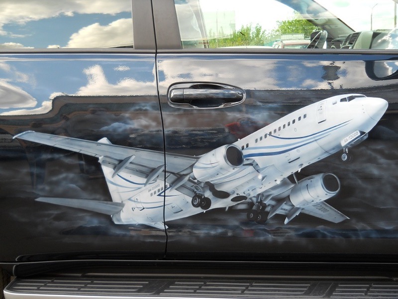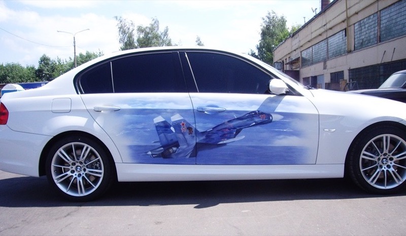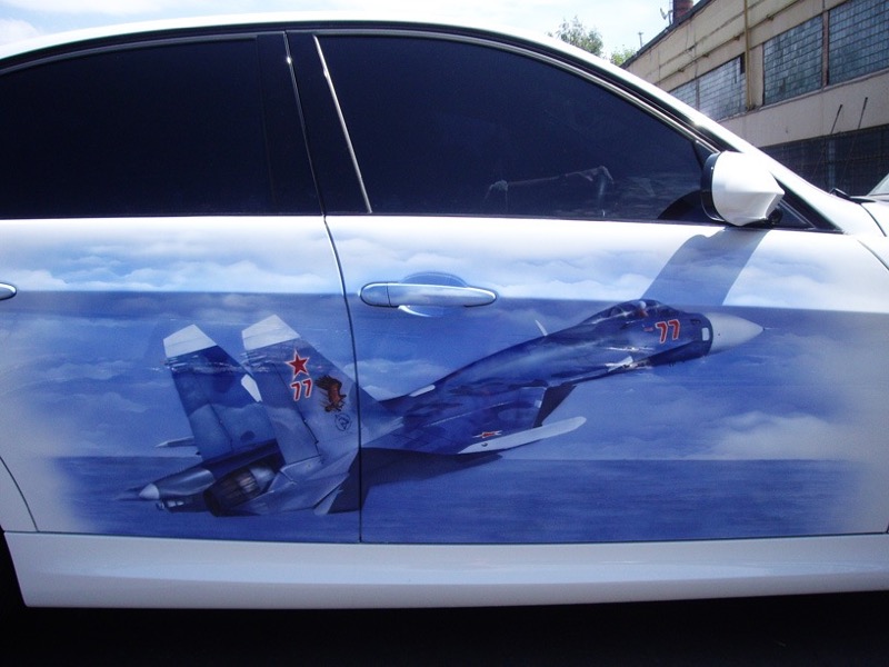 Самолет – аэрография пленкой на автомобиль, мотоцикл, шлем.