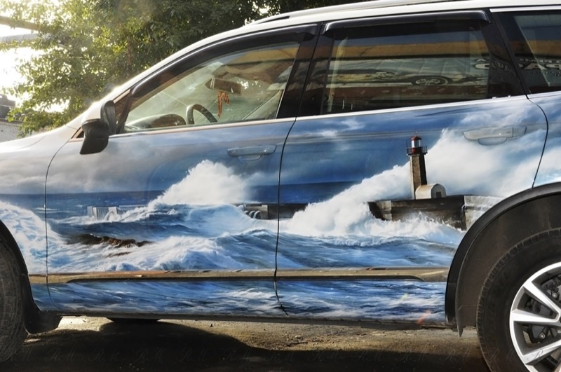 Море — аэрография пленкой на автомобили, мотоциклы, шлемы. Нанесем абсолютно любой рисунок, на любой элемент. Наши возможности шире, чем представленные тут примеры. Уточняйте подробности у менеджеров.