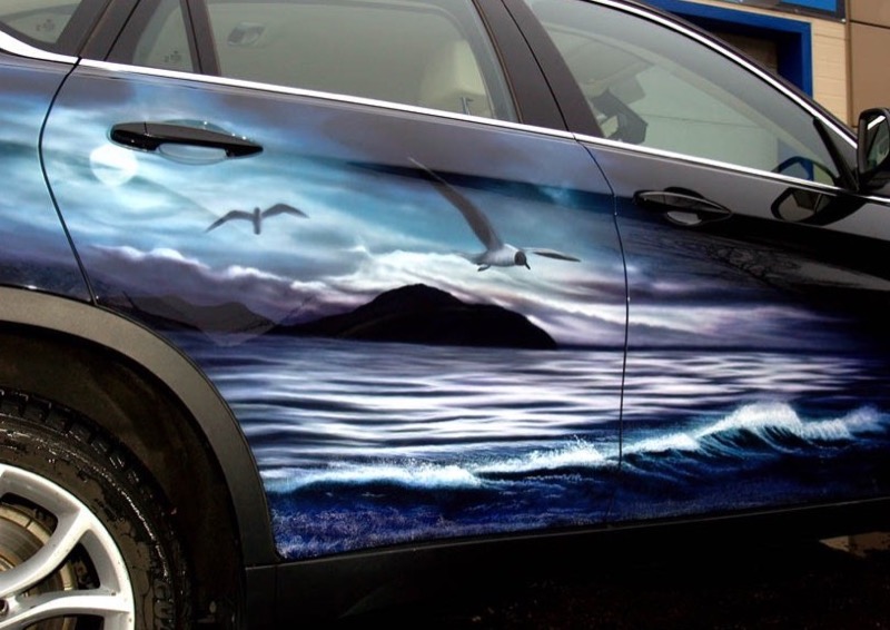 Море – аэрография пленкой на автомобиль, мотоцикл, шлем.