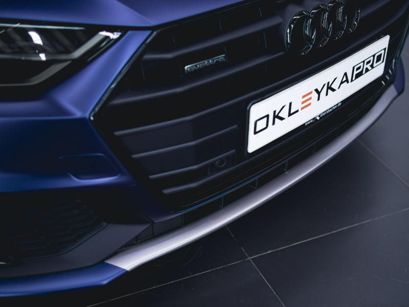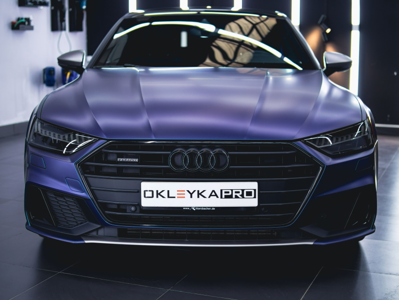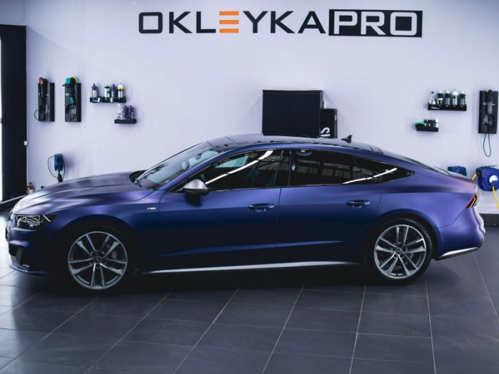 Какие материалы: цветной винил KPMF (синий) и Oracal 970-908/ матовый полиуретан Иристек.