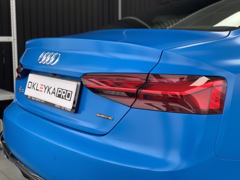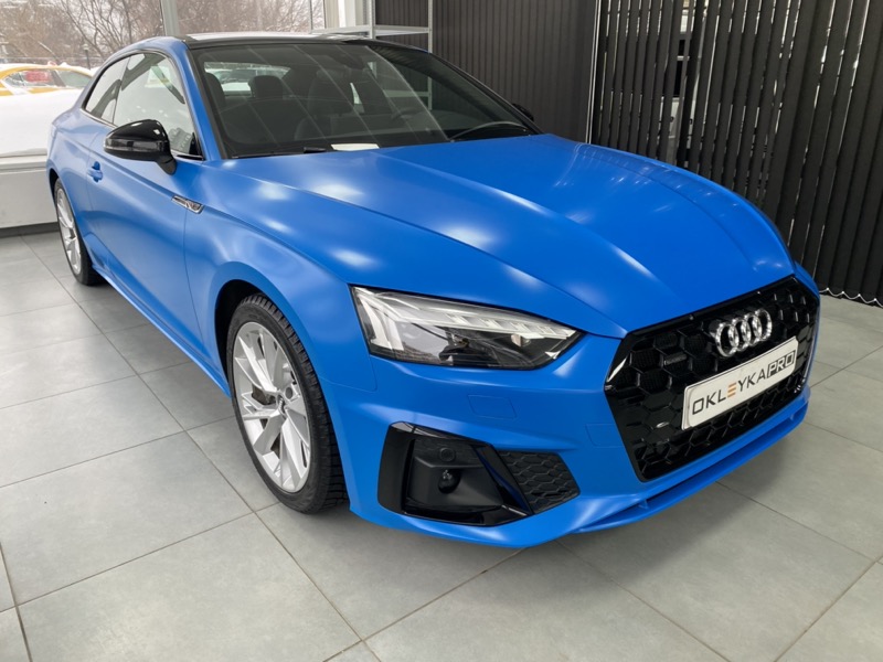 Защитить кузов автомобиля Ауди А5 от сколов и царапин. Применили максимальную защиту. Двойная скорлупа: полиуретановая пленка и керамика на пленку. Пленка матовая, что придает автомобилю индивидуальность.