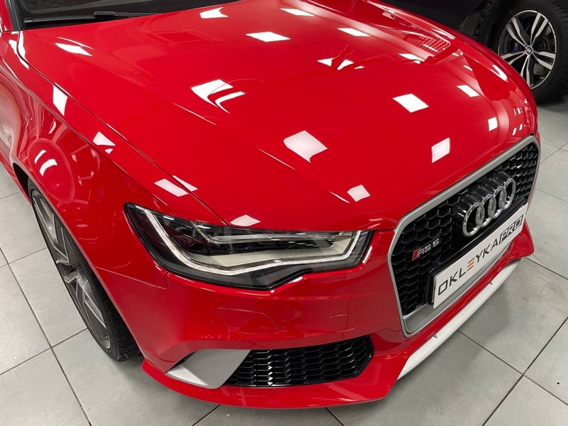Защитить кузов и ЛКП автомобиля Audi RS 6 от сколов, царапин, насекомых, реагентов и ультрафиолета. Для этого кузов покрыли полиуретановой глянцевой пленкой, а саму пленку защитили кварцевой керамикой.