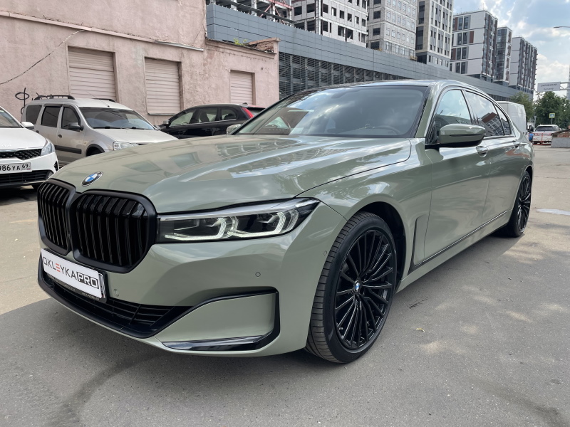 Полная оклейка автомобиля с проемами в цветной автовинил (цвет «Зеленый милитари»).