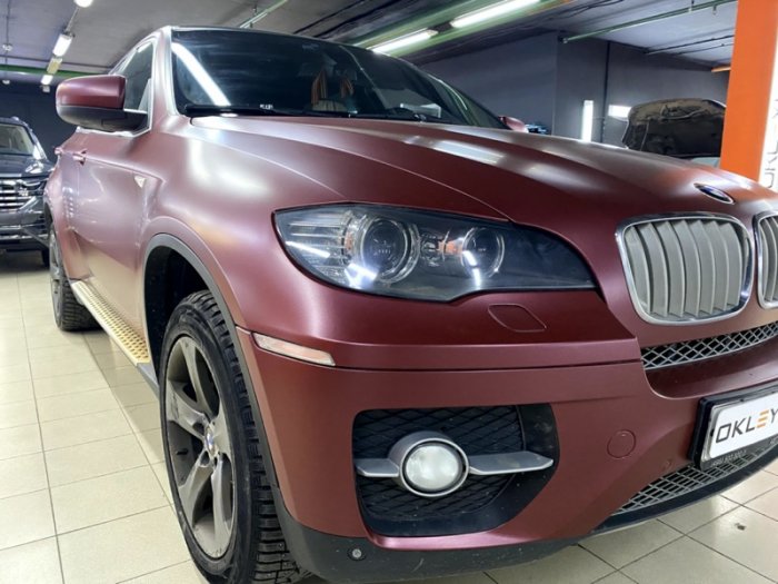 Полная оклейка автомобиля в матовую виниловую пленку премиум класса бордового цвета, матовую