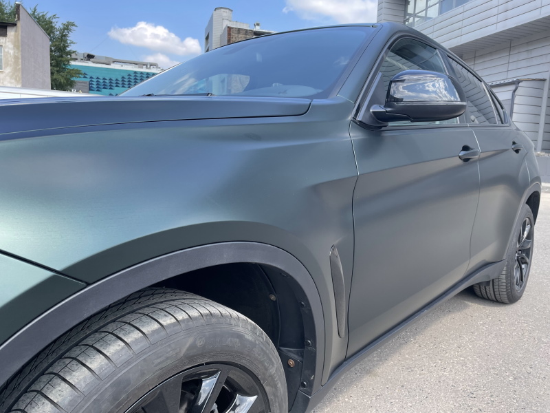 Изменить цвет автомобиля BMW X6 и защитить кузов от сколов и царапин, придать автомобилю брутальный внешний вид.