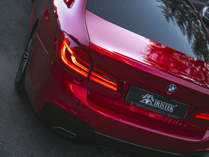 BMW M5 оклейка в красную полиуретановую пленку IRISTEK