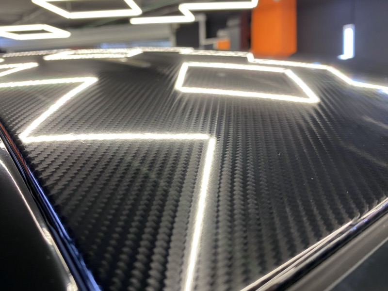 Оклейка крыши и зеркал автомобиля в полиуретановый карбон