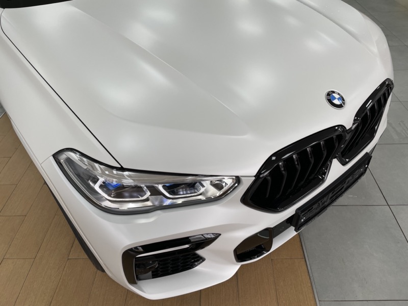Марка автомобиля: BMW X6.Предыстория: клиент решил защитить кузов своего нового автомобиля, заодно придать индивидуальности своему авто пленкой матового оттенка. Также защитить все хромовые элементы автомобиля черным винилом.