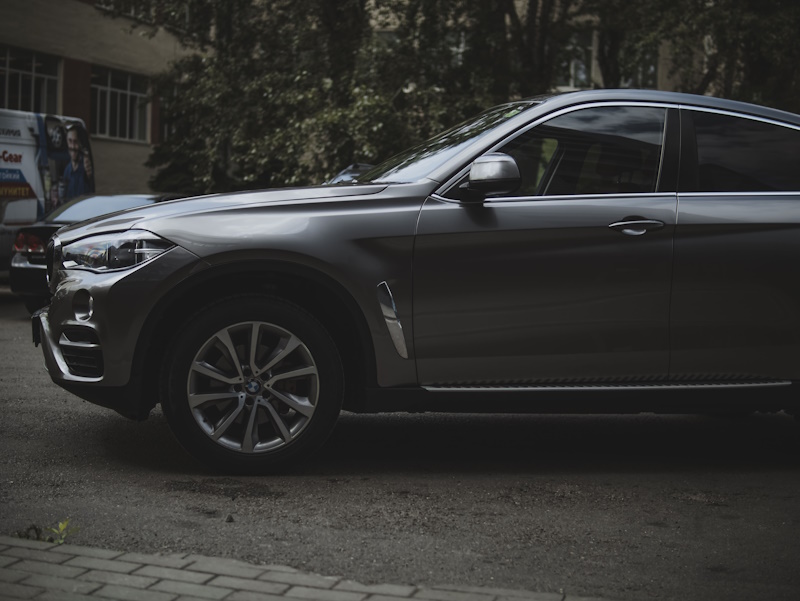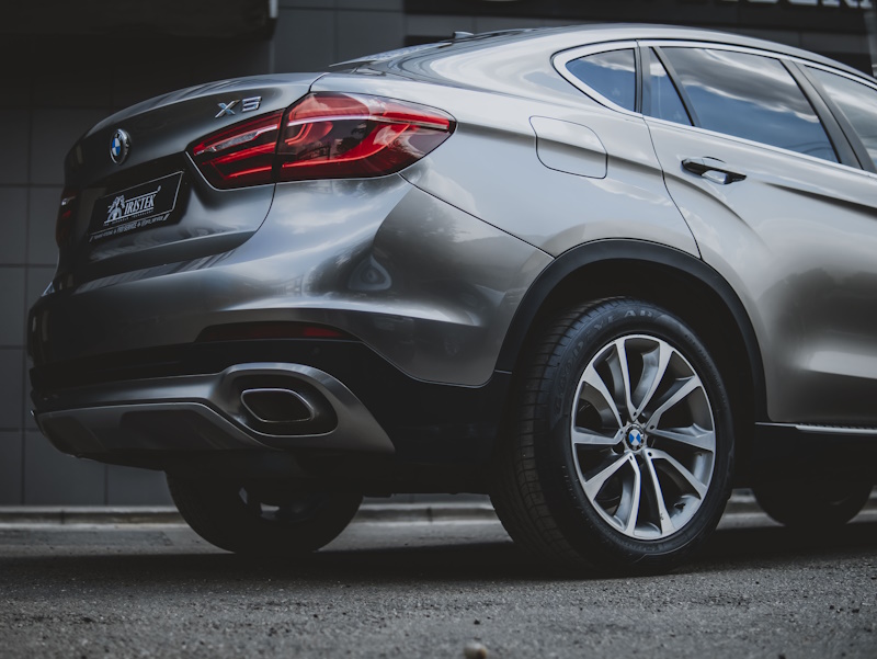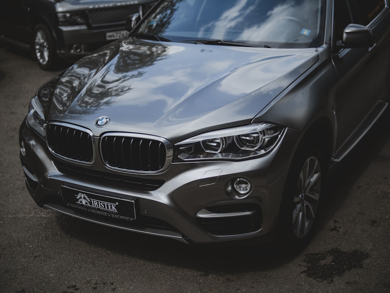 Оклеить кузов автомобиля BMW X6 в серебряный металлик.