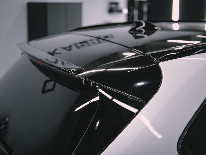 Оклейка крыши и спойлера в черный гибрид.