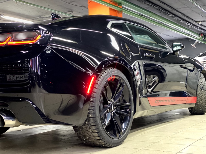 Марка автомобиля: Chevrolet Camaro.Задача: наклеить спортивные полосы и антихром.