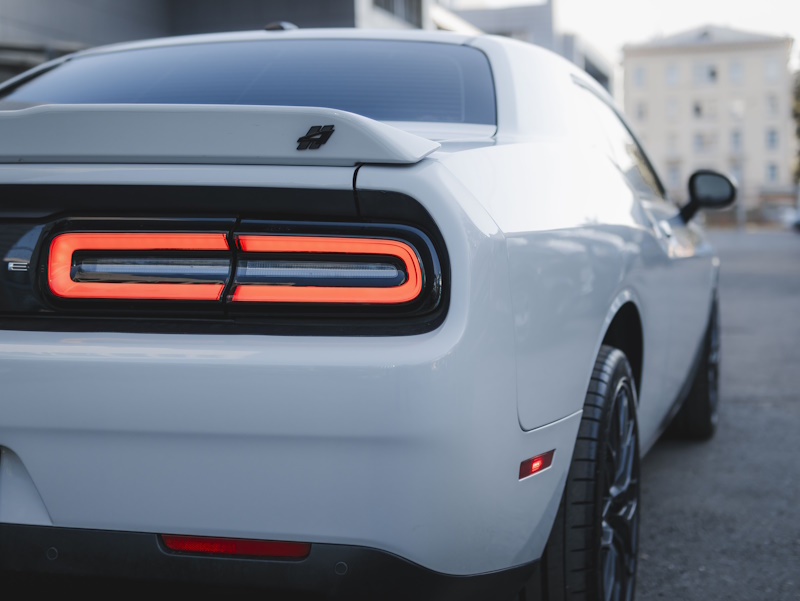 Оклеили кузов автомобиля Dodge Challenger в глянцевый полиуретан по пакету «Стандарт+» и забронировали лобовое стекло.