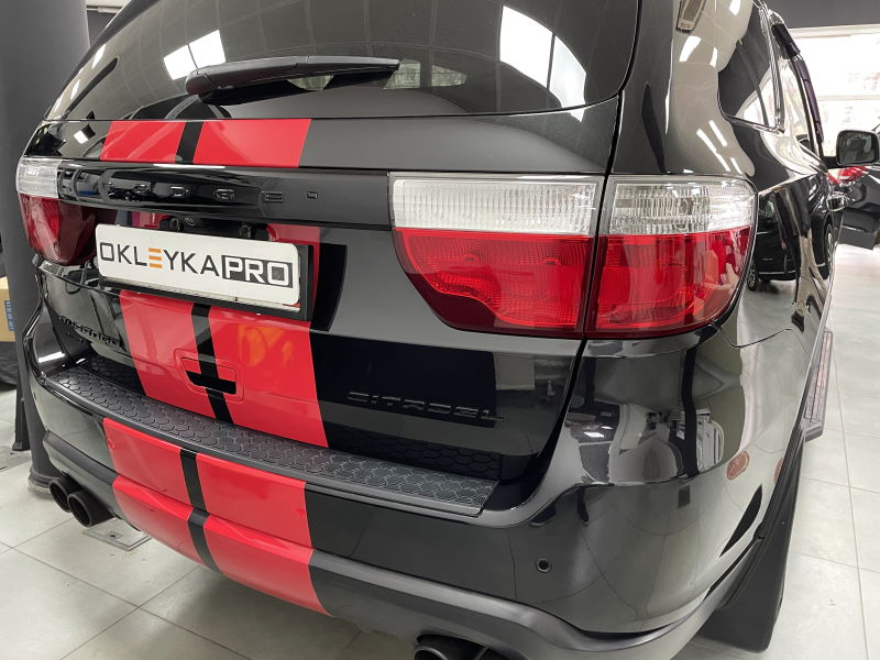 Нанесение спортивных виниловых полос красного цвета.