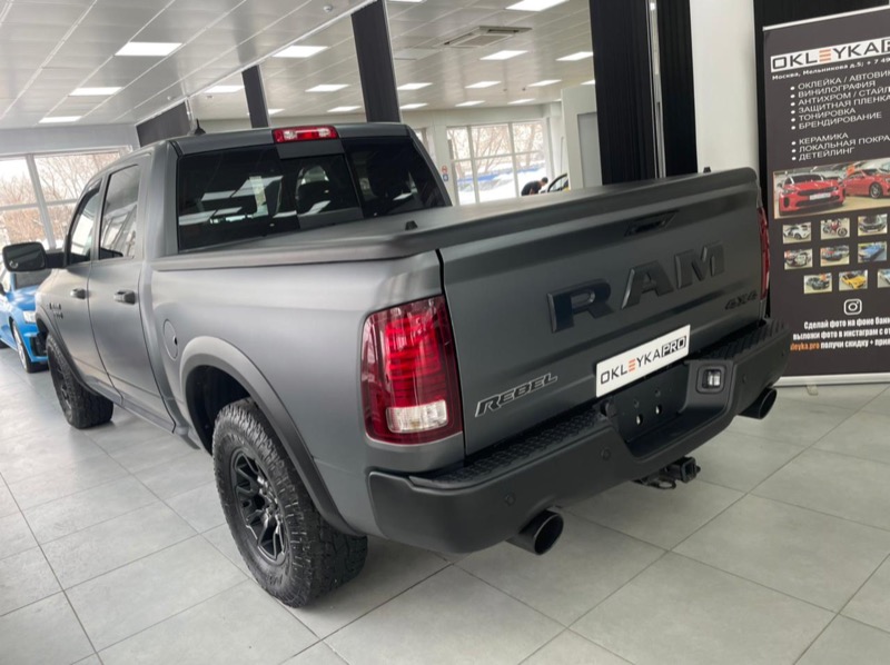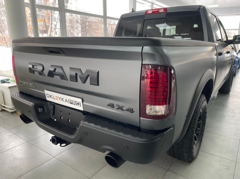 Стайлинг и защита кузова автомобиля Dodge Ram: оклейка серым автовинилом и покрытие пленки керамикой.