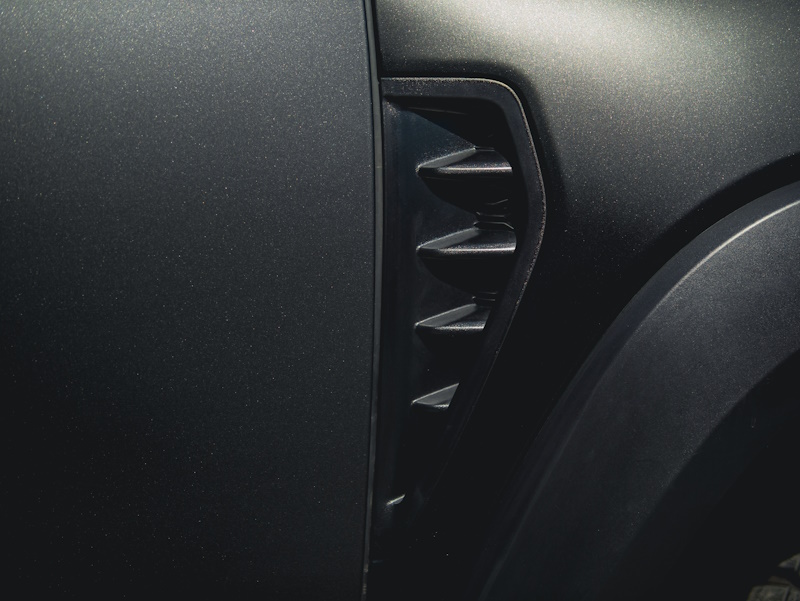 Выполнили полную оклейку кузова в цветной винил (PET Satin Chrome Black «Черный хром»), на пленку нанесли керамику. Затонировали передние фары и сделали антихром решетки и жабр.