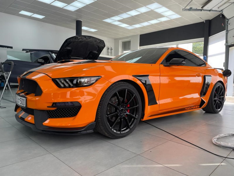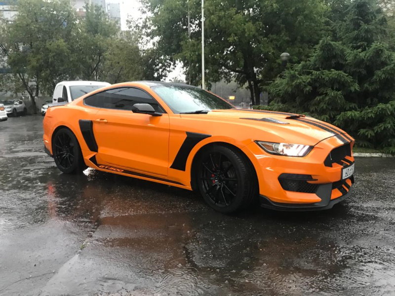 Задача: изменить внешний вид автомобиля Ford Mustang, оклеить в цветной автовинил, нанести черные спортивные полосы, сделать тонировку и антихром.