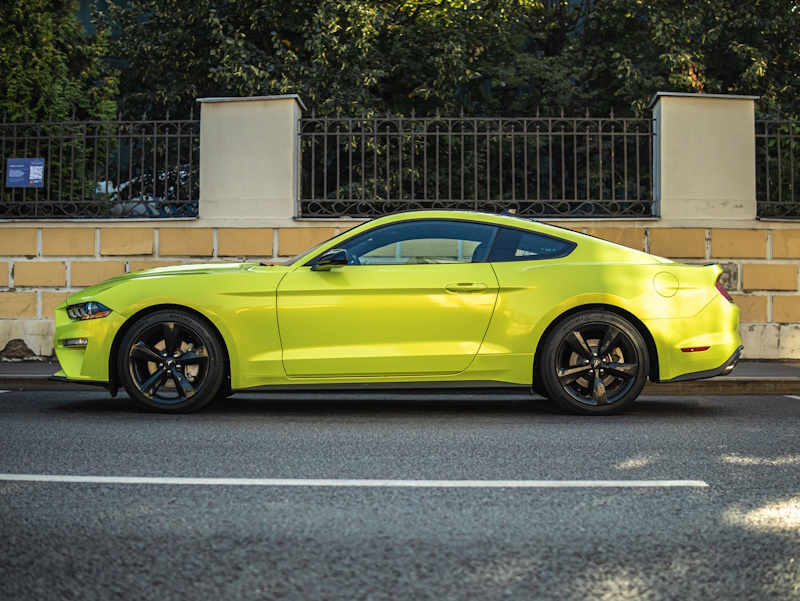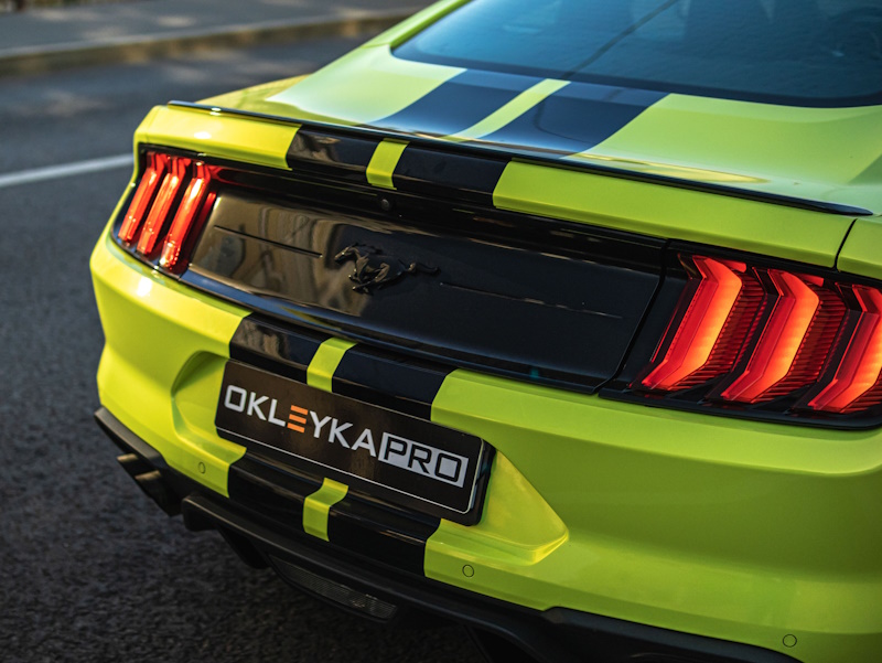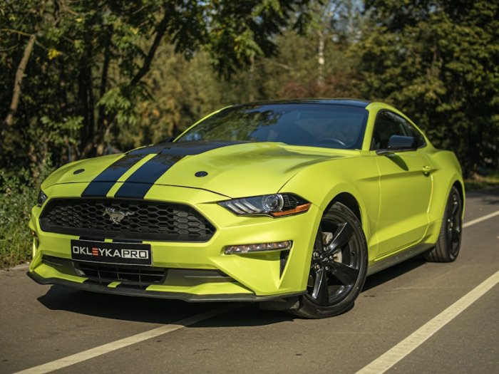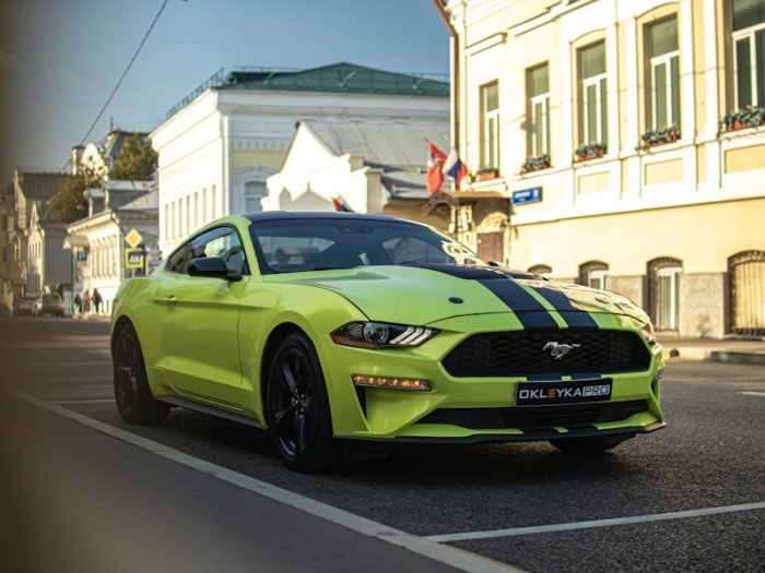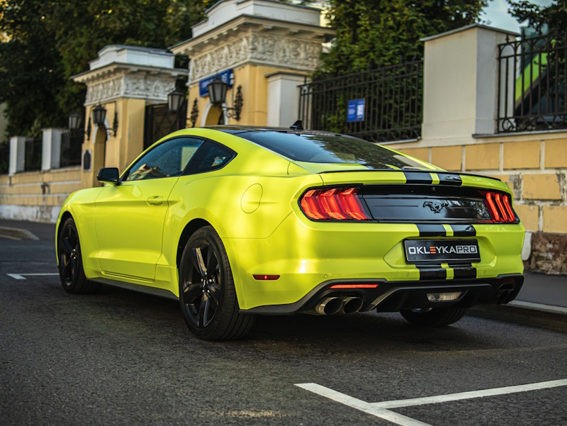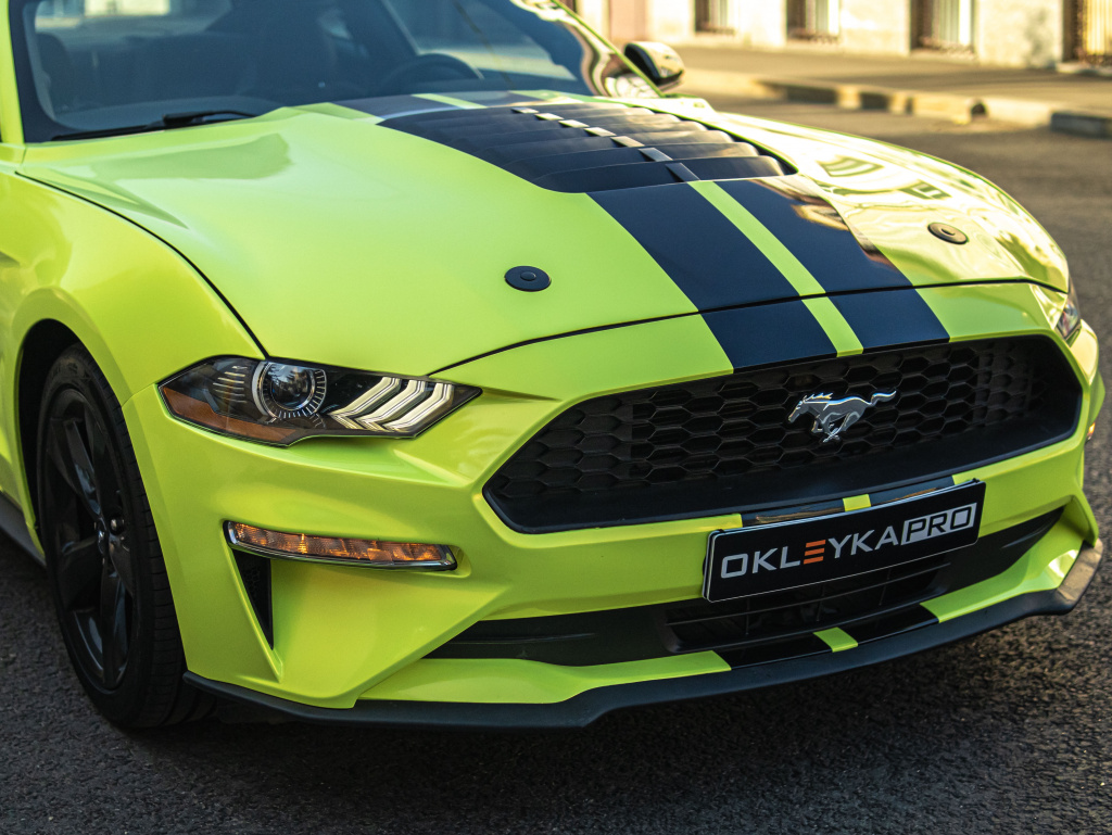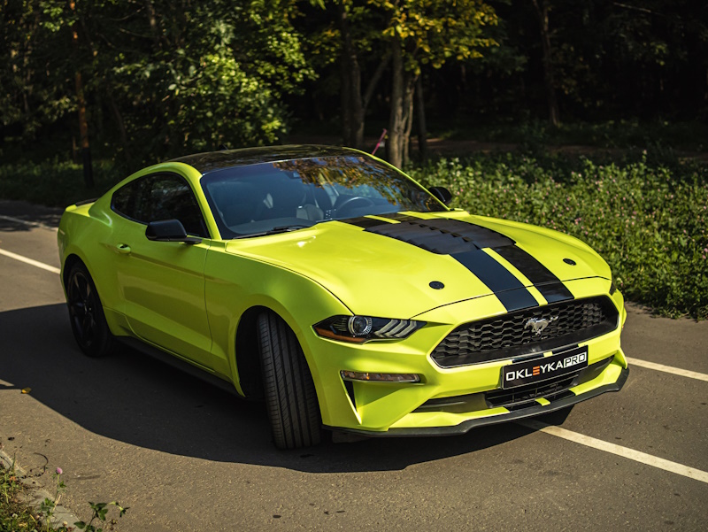Форд Мустанг цветная оклейка, удаление вмятин, тонировка, устранение сколов на стекле