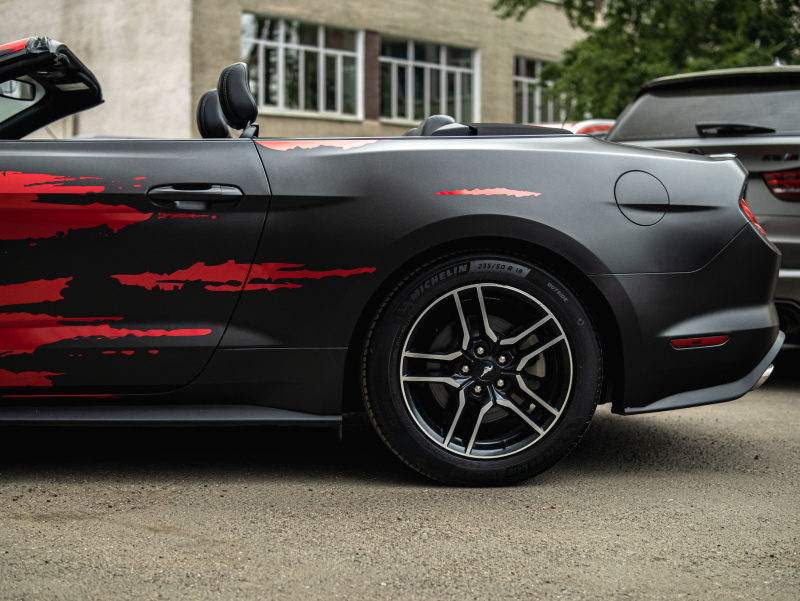 Задача: оклейка автомобиля Ford Mustang кабриолет в дизайн цветным винилом.