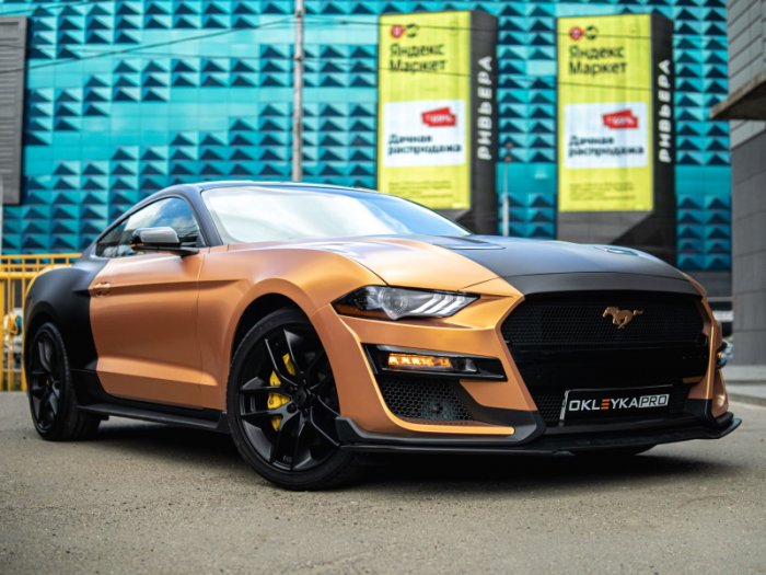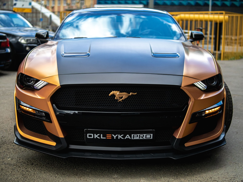 Задача: оклейка автомобиля Ford Mustang в индивидуальном стиле по дизайн-макету.