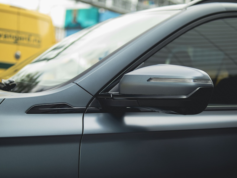 Выполнили полную оклейку кузова в матовую полиуретановую пленку Иристек. Сделали шумоизоляцию арок и полный антихром. Защитили глянцевые элементы в салоне.
