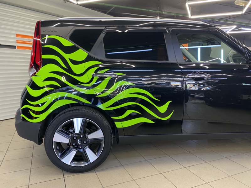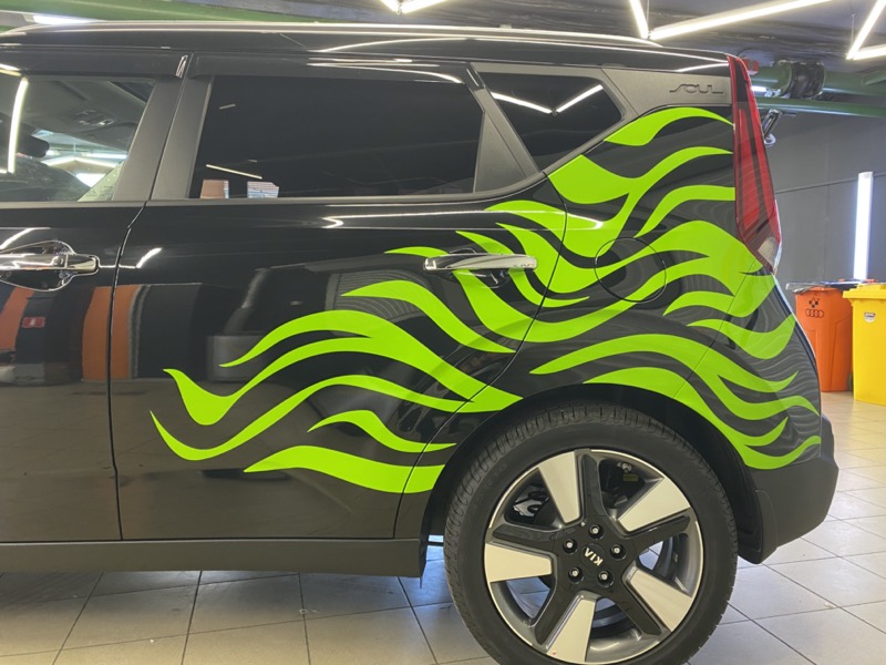 Задача: защитить полностью кузов автомобиля от механических воздействий окружающей среды, добавить зеленых узоров.