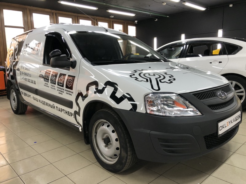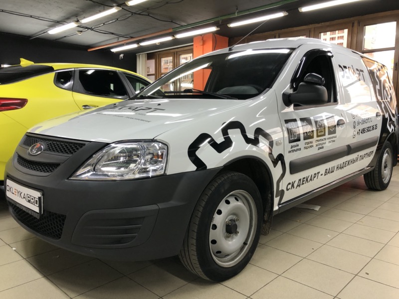 Брендирование автомобиля Лада Ларгус в фирменный стиль компании Декарт