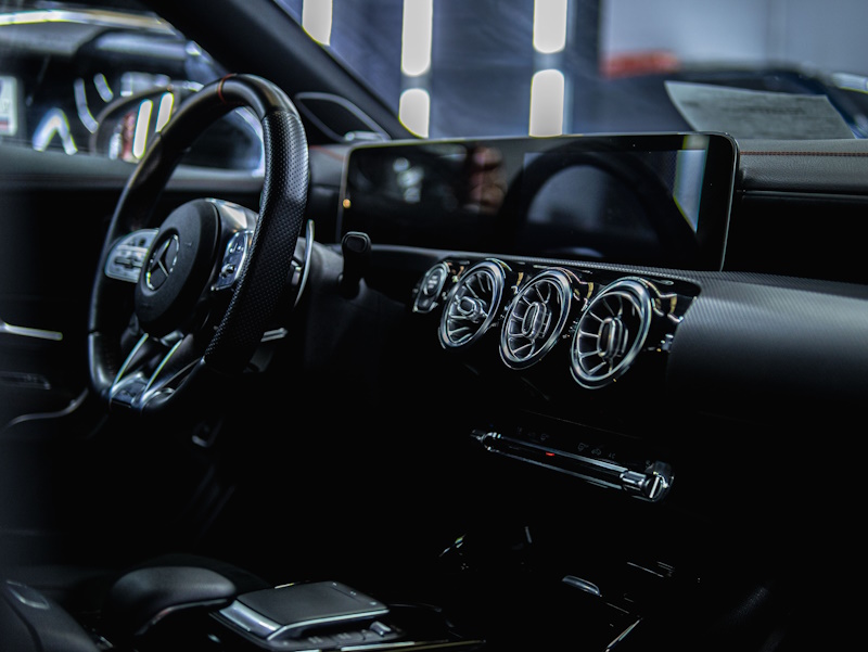 Оклеили кузов автомобиля Mercedes-Benz CLA в прозрачный матовый полиуретан и сделали химчистку салона.
