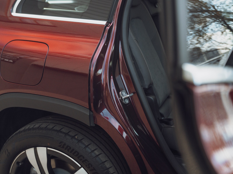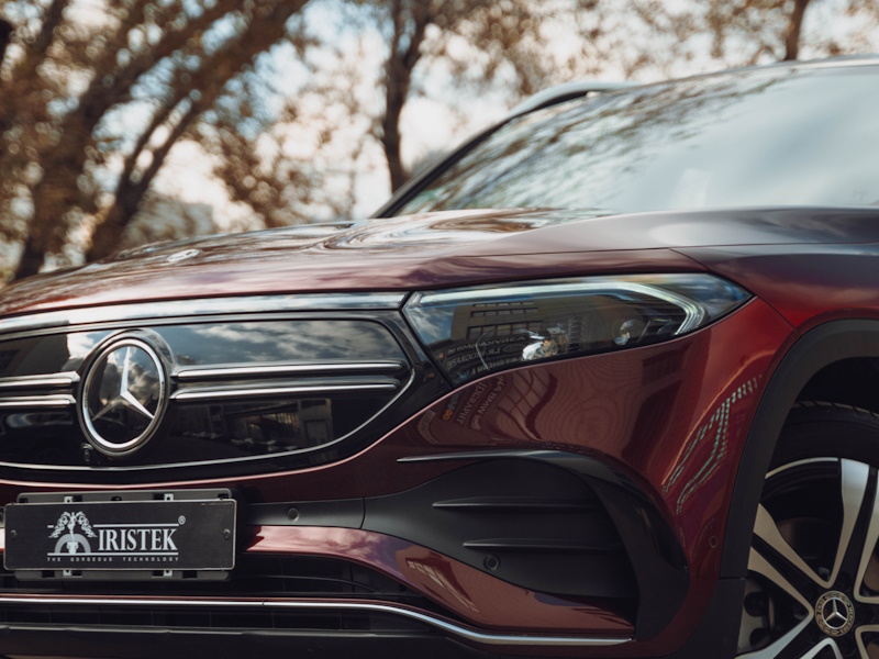 Выполнили оклейку автомобиля Mercedes-Benz EQB в цветную виниловую пленку IRISTEK, сверху защитили кузов глянцевым полиуретаном.