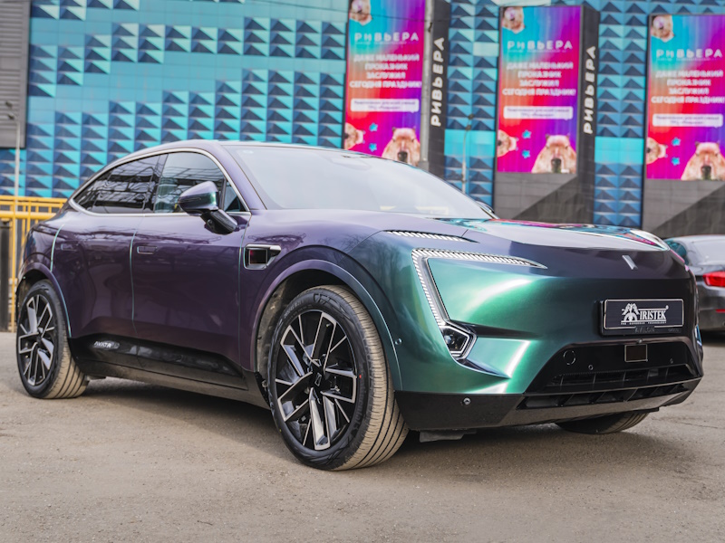 Какие материалы: цветная полиуретановая пленка IRISTEK PPF Colors Chameleon Storm Blue Purple, UC8068/ керамика GYEON Q² CANCOAT PRO.